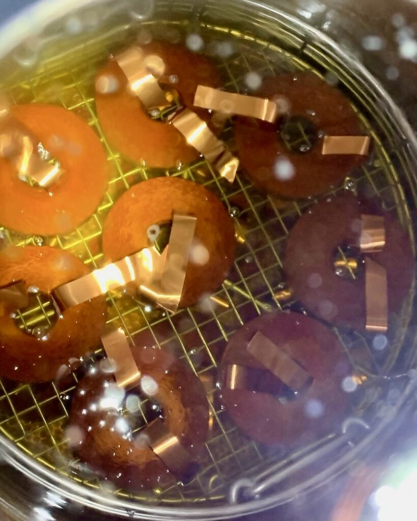 The coiled foil is then put under vacuum pressure in an oil tank at high temperature for about a week to permeate everything with oil.