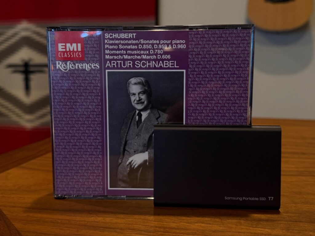 I'm using a 2T Samsung T7 SSD external drive (above) for my Mac that's got 580 albums in DSD stored on it, and automatically Roon recognized all the files on my T7 as a digital music library, which allows me to stream those DSD files to the Gold Note DS-10 EVO. The T7 is about the dimensions of a credit card, but fatter. It's amazing how much data can fit on such a small SSD drive. Essentially, the T7 is a portable music library that you can take with you when visiting friends, going to HiFi shows, or when just relaxing in the comfort of your listening room.