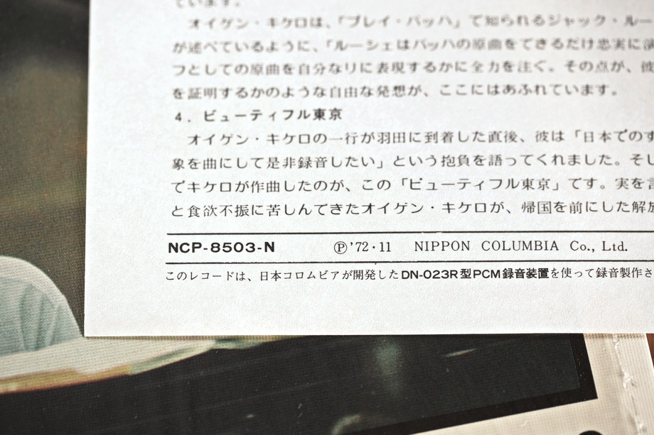 This record has the catalog number OX-7008-ND, which suggests that it is only the eighth "digital" recording of this release. In fact, it was the first recording made on the DN-023R tape recorder to be made public, but it was released after seven later recordings. It is therefore the fourth recording in history with a digital recording, after the three experimental ones we mentioned at the beginning.