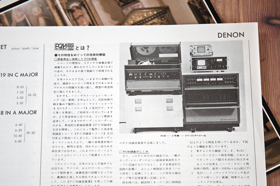Initially, Denon did not elaborate on the technologies they used, merely noting on the inserts that it was a digital recording and informing listeners which tape recorder was used to make the recording. Over time, more and more information was provided, until finally, at the end of the 1970s, with the advent of the U-Matic tape recorder, this information disappeared from the disc descriptions.