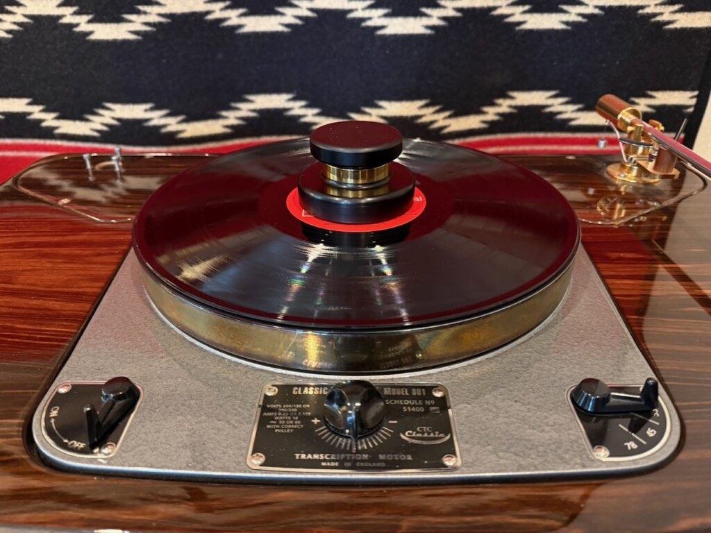 My turntable is Classic Turntable Company Classic 301 motor assembly equipped with an oversize high-mass (12kg) brass platter, mounted in a high-mass Artisan Fidelity plinth fitted with Stillpoints Ultra SS footers.