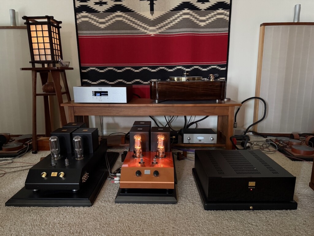 The Ongaku and M8 RIAA phono equalizer rest upon Acoustic Revive isolation platforms.
