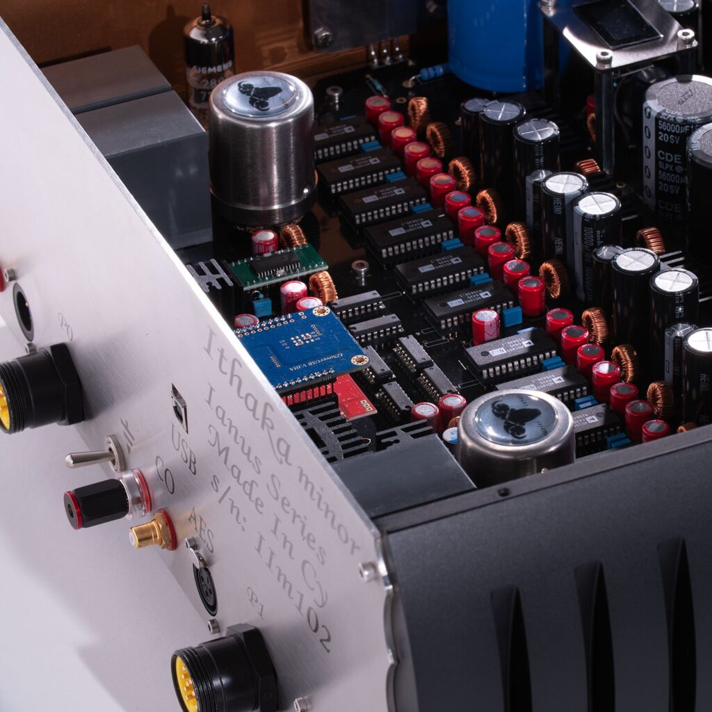 The R2R ICs are current output devices and their impedance is very high, close to an ideal current source. The current must be converted to voltage and avoids using sonic degrading Opamps or simple resistors. AC uses only custom designed transformers that convert the current differential to a single-ended voltage output. The specially designed transformers are an ideal solution, and second to none in direct comparison to the many alternative I/V methods available. The Ithaka Minor uses different configuration for the I/V transformers, unique D/A range. This was necessary and at same time a nice evolution in its I/V tech, as in contrast to Aries Cerat top models, the converter banks are in Single-Ended mode.