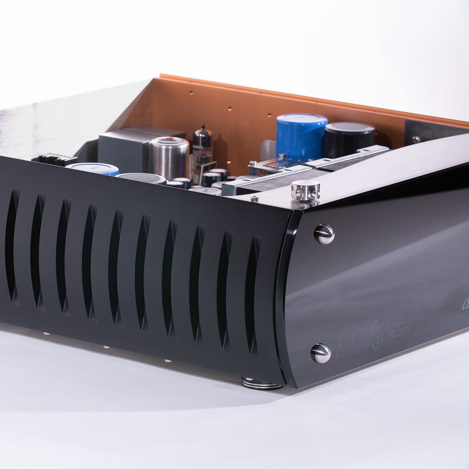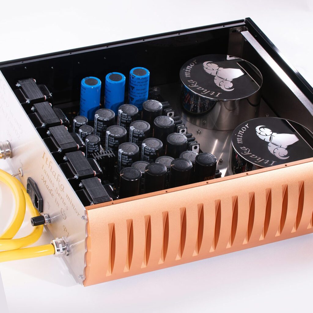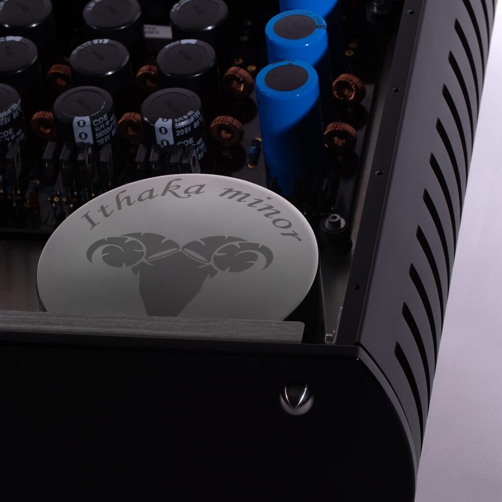 The Ithaka Minor's PSU architecture is derived from its bigger brother, though it is smaller in size and potential. As in all top model DACs, the Ithaka Minor is powered by its own massive external power supply. It has separate digital and analog circuits like its big brother. The TriodeFet stage is powered by a triple choke filtered, high energy and high current PSU, and utilizes two massive low noise 400VA transformers to power all stages through very low noise Schottsky SIC discrete rectifiers. It uses ultra-high-quality inductors and capacitors to filter out high frequency noise for unmatched noiseless power rails.