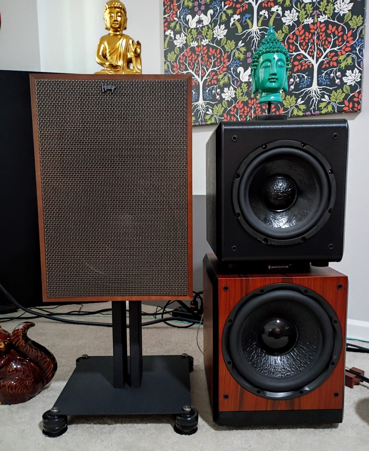 Fast forward to 2015, when I snagged a pair of Klipsch RB3 Reference monitors in a Goodwill. The price tag stated $10(!) for a pair of loudspeakers that appeared to be built to a fairly exacting standard of construction, and a quick check of my smart phone showed them being sold on resale sites for upwards of $400. I'd read for years where audiophiles had found unbelievable treasures at thrift stores, but this was the closest I'd ever come to finding anything that wasn't smashed and was actually legit. The RB3's didn't have a scratch on them, but were caked with some kind of reddish-brown dust that covered every surface of each speaker's exterior. Removing the drivers revealed that the dust also filled much of their interior cavities, and cleaning them required a fairly extensive effort; afterwards, they thrilled me with their exceptional quality of sound. The RB3's might not have been in the same league as the Klipschorns from decades before, but were definitely cut from the same cloth, and displayed a similar sonic signature. I've held onto them, and with proper room placement and a few great watts of triode tube power, they still inspire a thrill in me that hearkens back to that antique mall so many years ago!