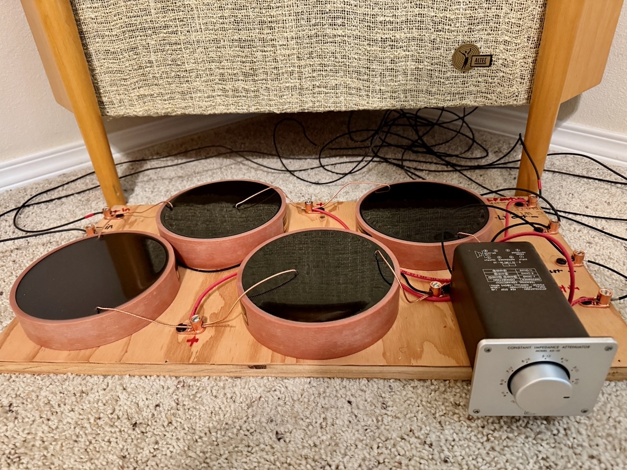 The loudspeakers in this system were the Duelund-Altec Project loudspeakers, consisting of the successful marriage of the latest state-of-art Duelund Coherent Audio CAST tinned-copper capacitors, inductors, and resistors—in a Jean Hiraga inspired crossover circuit (photo below)—with the historically important vintage Altec loudspeakers (above, below) that were custom made for the domestic use of conductor Leopold Stokowski in the early 1960s (hereinafter referred to as the "Stokowski" Altec's).
