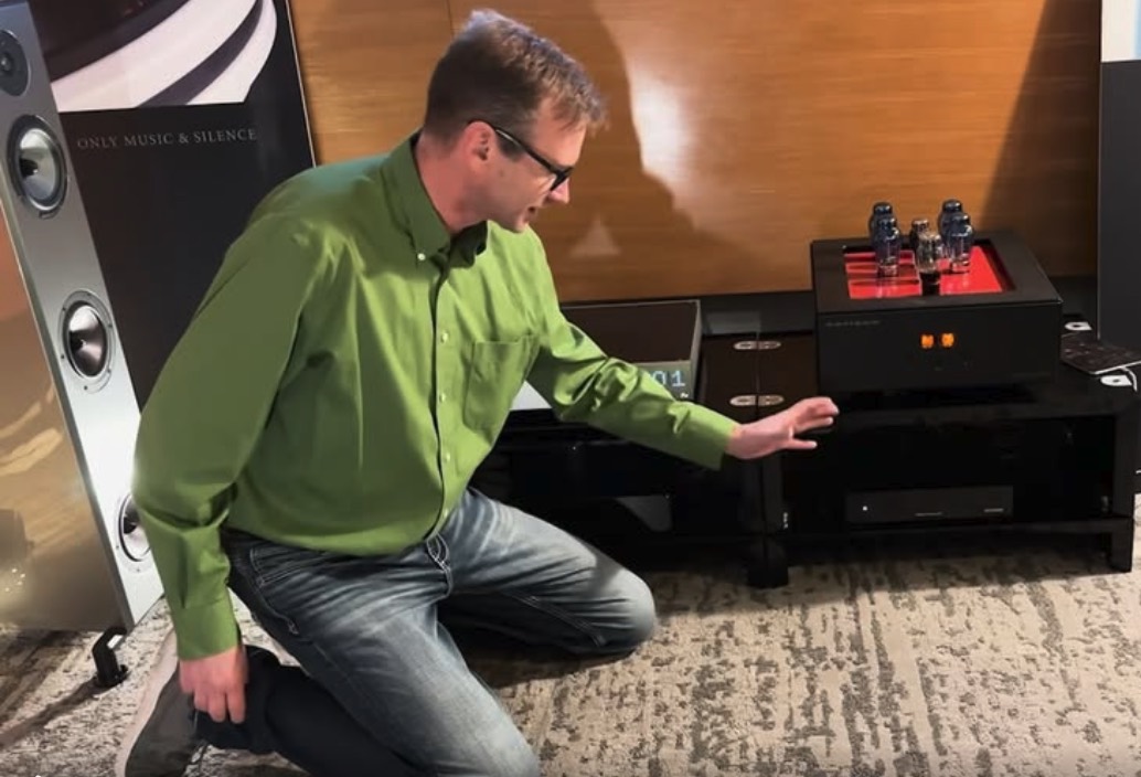 Andrew Gillis demonstrates the Sonore Signature Rendu at a recent Audio Expo North America display (still image courtesy of a video on the Small Green Computer Facebook page)