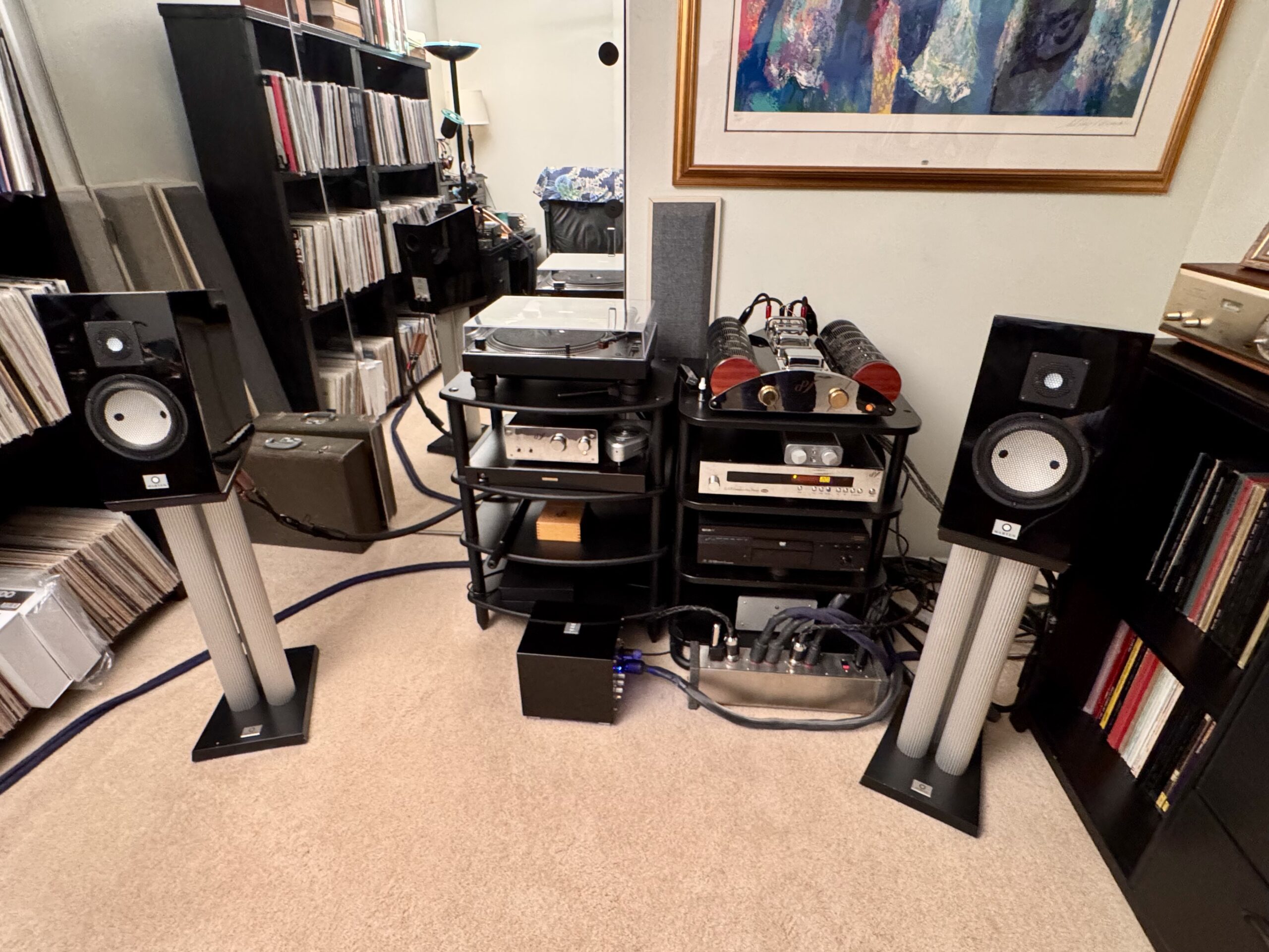 I utilized the Stein Music Adventurin cartridge, the EAR PB-88 tube phono-stage, the EAR V12 tube integrated amplifier, the Martin Duke Two Speakers, and Rel subwoofer. Cables included UIT Audio interconnects and power cords, as well as Kubala-Sosna Elation! interconnects and power cords. Also, Audioquest provided the fantastic Dragon speaker cables, while SteinMusic provided the recently reviewed Signature Speaker Matches. With all this, I still heard a significant improvement in the liveliness and sense of realism from this vinyl. It was as pronounced an improvement as I heard utilizing the CDs of other recordings. Holistically, there is a fullness and richness that was not present before the acoustic discs.