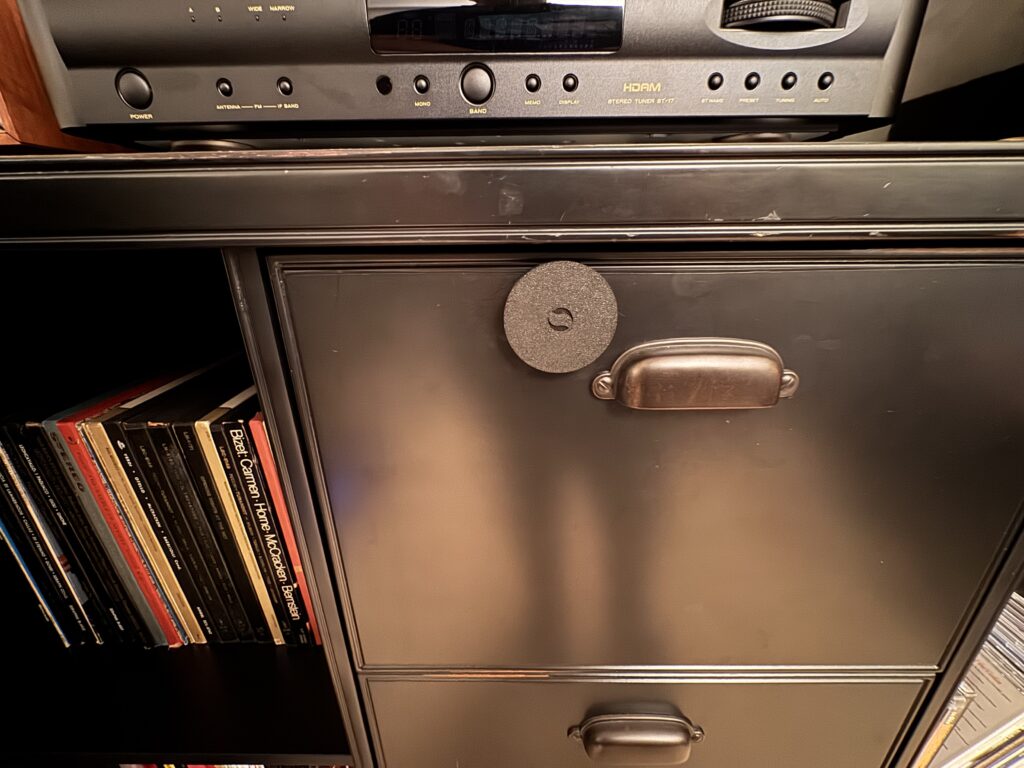 3. I placed two discs at the same height about a meter apart in the rear of the room. This was my favored installation pattern for my nearfield listening room.