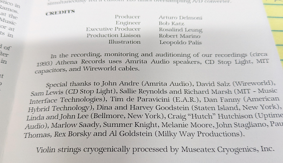 The key focus is, of course, the music and the musicians. When originally released in 1993, Robert Hesson wrote a review for Stereophile (Recording of the Month, November 1993, here), in which he says, in part, "These are remarkable performances captured in unusually lifelike sonics, and I strongly recommend them, especially to those who have, or wish to, come under Mr. Delmoni's selfless spell."