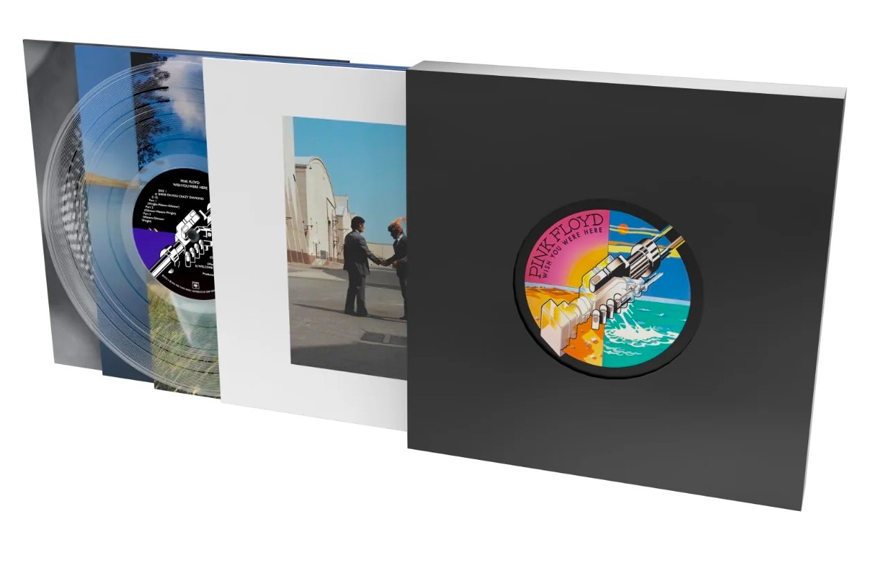 Sony Music is celebrating the 50th anniversary reissue of Pink Floyd's landmark 1975 album, Wish You Were Here, with a multitude of sets repackaged as Wish You Were Here 50. Among the available formats are three-LP sets, a 2-compact disc set, a standalone Bluray disc, and high-resolution digital downloads. The crème de la crème version is Wish You Were Here 50: Deluxe Edition, a sprawling box set that features four LPs pressed on crystal-clear vinyl, the pair of compact discs, the Bluray disc, a 7-inch replica Japanese-market single, a poster and comic book (penned by Pink Floyd drummer Nick Mason), and a fabulous casebound book with an absolute treasure trove of band photos and album-centric memorabilia, with many of the images previously unseen in any collection. All are encased in a heavy, high-gloss black slipcase with a centrally located round die-cut that shows through to the casebound book's classic Wish You Were Here logo. It's a gorgeous package, the sort that collectors and completists will go absolutely gaga for! You can grab a copy of any of the available formats via Pink Floyd's web store HERE, which provides links to a variety of online retailers; the sets can also be found at many brick-and-mortar shops like your favorite independent record store. The high res digital files are available for streaming or download at all major online services.