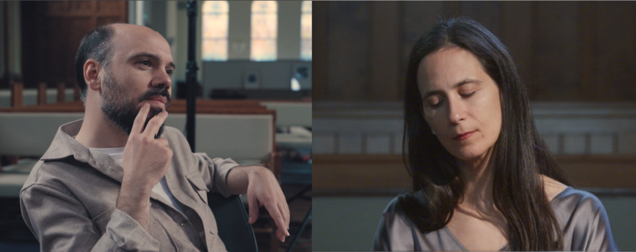 Ivan Vukosavljević (composer) and Joana Gama (pianist) during recording sessions, Westvest90 Church, Schiedam, The Netherlands, September 25th to 26th 2025.