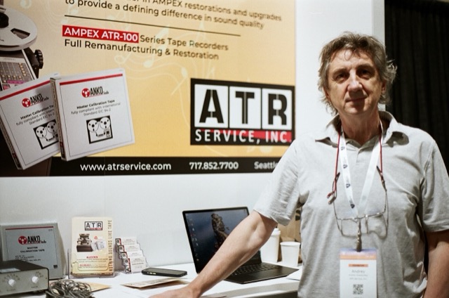 Andrey Kosobutsky was there from ATR Services Company, an outfit in Seattle which specializes in repairs and parts for the Ampex ATR-100 and a few models of Ampex multi-track recorders. They were selling a modern flux loop system, the model MFS-3, which can be used to calibrate the heads and electronics in the absence of an alignment tape, and with higher precision than you can get from an alignment tape. This allows you to test the electronics and head magnetics in the absence of the transport entirely to help isolate small and touchy problems. This is not a tool for every tape machine user or ever shop but it's one that you need when you need it. ATR does of course also sell alignment tapes and some of the other tools you need for more routine alignments.