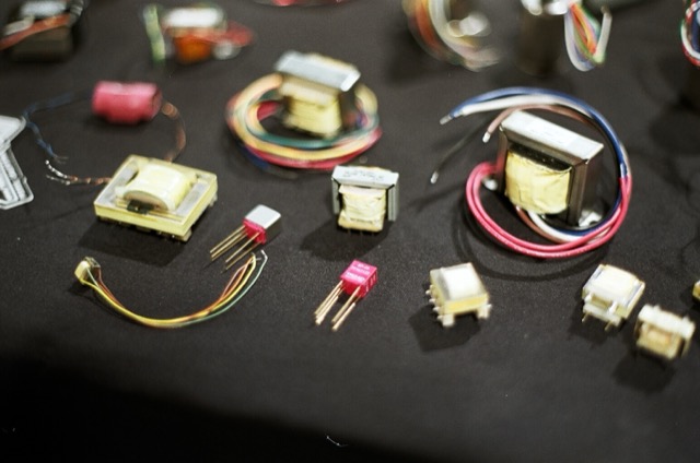 Only one component vendor there at the show, sadly, but it was Triad Transformers which sells a large array of new and historic transformer designs. Last year the big deal at the show was that they were re-introducing the old HS-series transformers that appeared in so much tube gear of the fifties and sixties, including their great interstage coupling transformers. This year they are introducing some stripped down versions of those same transformers with PC board mounting instead of being potted in cans with terminals for hand-termination. These new parts still have HS part numbers, and are functionally equivalent but less expensive than the designs they are adapted from and more friendly for modern construction practices. Though of course if you want to pay a bit more for the original packaging, those are still available too.