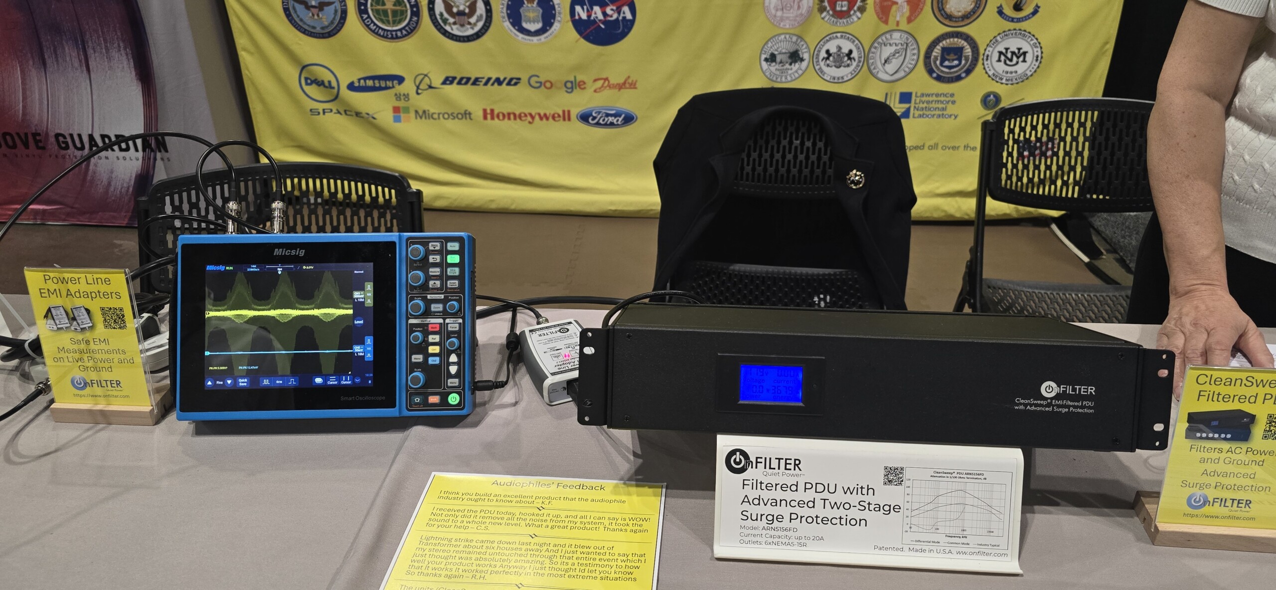 Also in the main expo hall is OnFilter (www.onfilter.com) who offers a wide variety of "CleanSweep" EMI filtering PDU's. The most interesting product of the lineup is their AB2020FG filters for load panels. These are encased filters that can mount adjacent to a typical power-panel (in a home or garage for example) and can be used to filter entire branch circuits directly at the breaker. Interesting story with this provider; they came to the audiophile community rather later in the game. They didn't start out with audio in mind. They designed and provided products for heavy industry, medical, even nuclear power plants. Places that need filtered power using devices that are designed to last for decades. It was much later when someone (or many a someone) reached out to see if this EMI filtering technology could of benefit with high-end audio. Short answer, yes! More info and online demo videos at https://www.onfilter.com/onfilter-videos. Contact Vladimir Draz at [email protected]. (831) 824-4052.