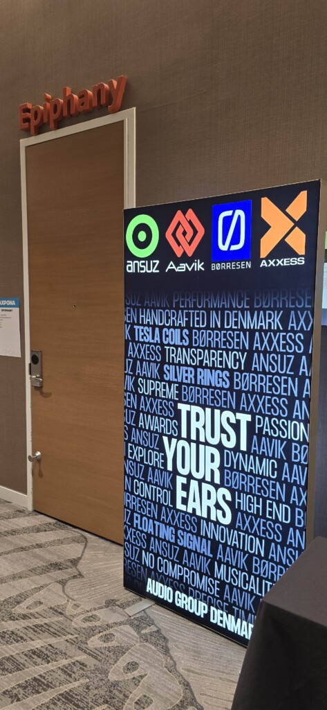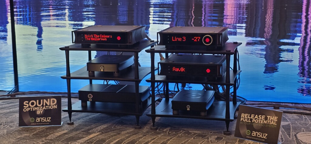 Audio Group Denmark is here showing their array of products under three of their sub-brands: Aavik streamers, Ansuz power delivery, and Børresen C3 5-driver speakers. I've been a huge fan of the planar tweeter setup that AGD uses throughout their product line. The highlight is their new 102-pound (46kg) Børresen BM3 sub 'array.' It's really more of a cabinet than array. I use the term array because it contains four custom Børresen DCC8 Neo drivers that fire 90-degrees off-axis to the listening position into  This is an interesting (and effective) concept. The bass envelops the environment rather than being pointed directly at the listener. Similar in concept to full-range speakers with side-firing subs. But reversed. The drivers fire into a matching set of opposed drivers into a center cavity. Since the drivers are firing towards each other the effect is magnified. Hence you don't need massive drivers to move enough air for the low-end. Thus, driver quality becomes far more important than driver size. The resultant sounds are then presented to the room via the front facing open cavity and also through the open back of the cabinet. There is a clarity in the low end that is simply hard to produce with the traditional massive bass drivers. The smaller drivers in this cabinet can be (and are) far more precise with much less over/undershoot and less driver cone deflection and distortion. The demo was an a/b comparison: Floor standing full-range C3 speakers by themselves, and then again with the new cabinets on. The extra realization in the low-end was captivating. Everyone in the room felt it. Brought us from the audience to the center of the stage. www.audiogroupdenmark.com