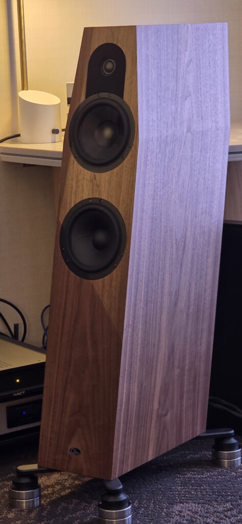 Qln Loudspeakers was showing off their new "2.5" way Prestige Five floor-standing speakers. The overall tone and presence reminds me of their Signature 2-way stand mounted speakers which I simply adored. The new ones split the mid and bass into separate drivers: 1 custom 184mm Kevlar and a 184mm hard-cone. Similar to other speakers from Qln, the drivers are time-aligned to avoid phase differences as the sounds move from driver to driver. This adds another dimension to the overall sound-stage and gives a supple and sublime three-dimensional sound stage. I'm a big fan of the Qln Signatures, and the new Prestige models take it up a level. www.qln.se