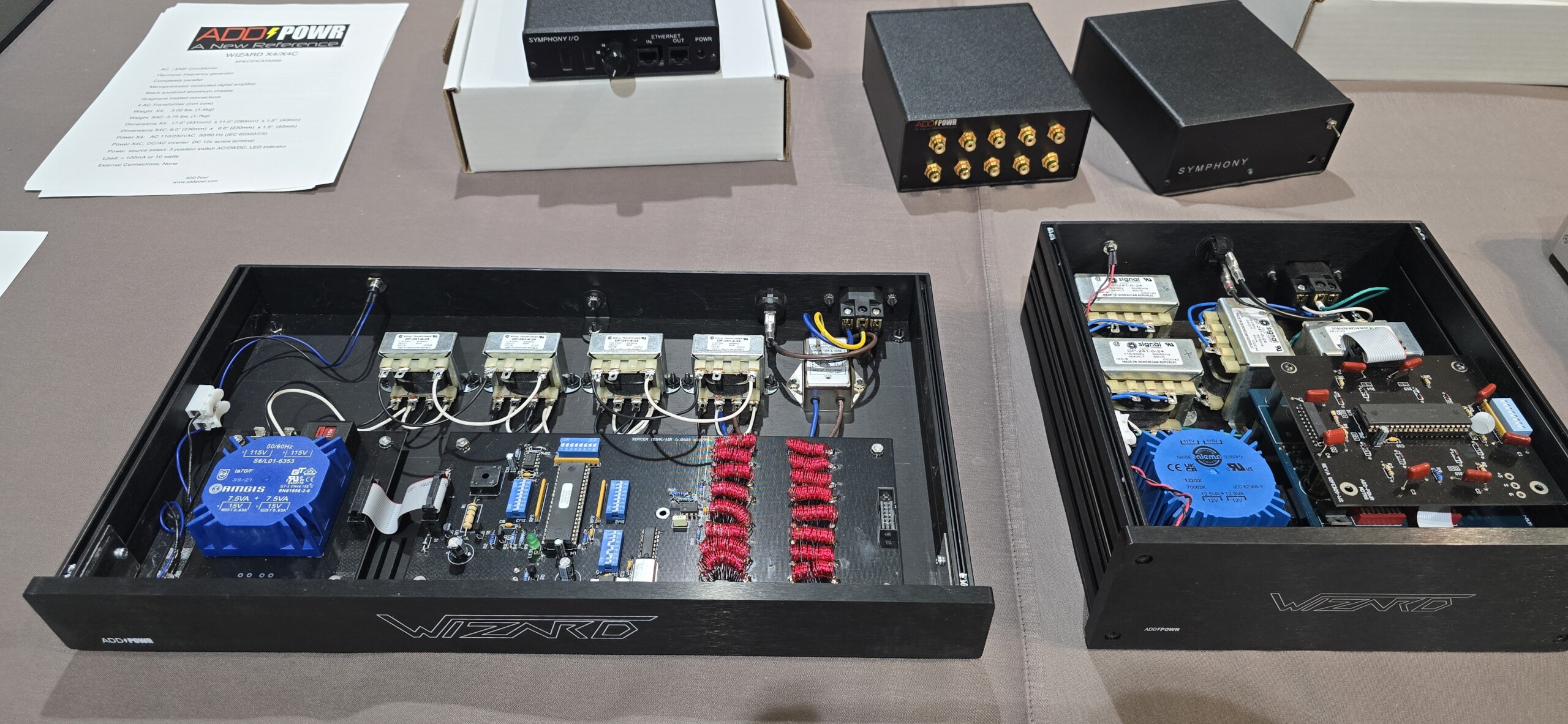 ADD Powr brought some interesting and thought provoking products to the show. Their devices, for both home and auto are designed to add as much as 0.5dB to 1.0dB of electrical and acoustic presence to an existing system by creating an "Algorithm Digital Defined Power" field to any nearby equipment when active. For the home system, it's a rack-mountable chassis that creates a low (10Hz) frequency square-wave signal that is designed to interact with existing signals in the environment. The system for autos works the same way, but can be powered with either AC or 12V CD current. In both cases, energy is added to electrical system and signaling. Called the "Wizard" product line, it doesn't directly connect to nearby gear. It is a powered device that consists of a series of step-up and step-down transformers that feeds a rectifier, which in turn feeds a custom tuned antennae array. If I can get a demo unit, I'd look forward to reviewing the product and technology. Like I mentioned, interesting and thought provoking. www.add-powr.com. (310) 954-4837