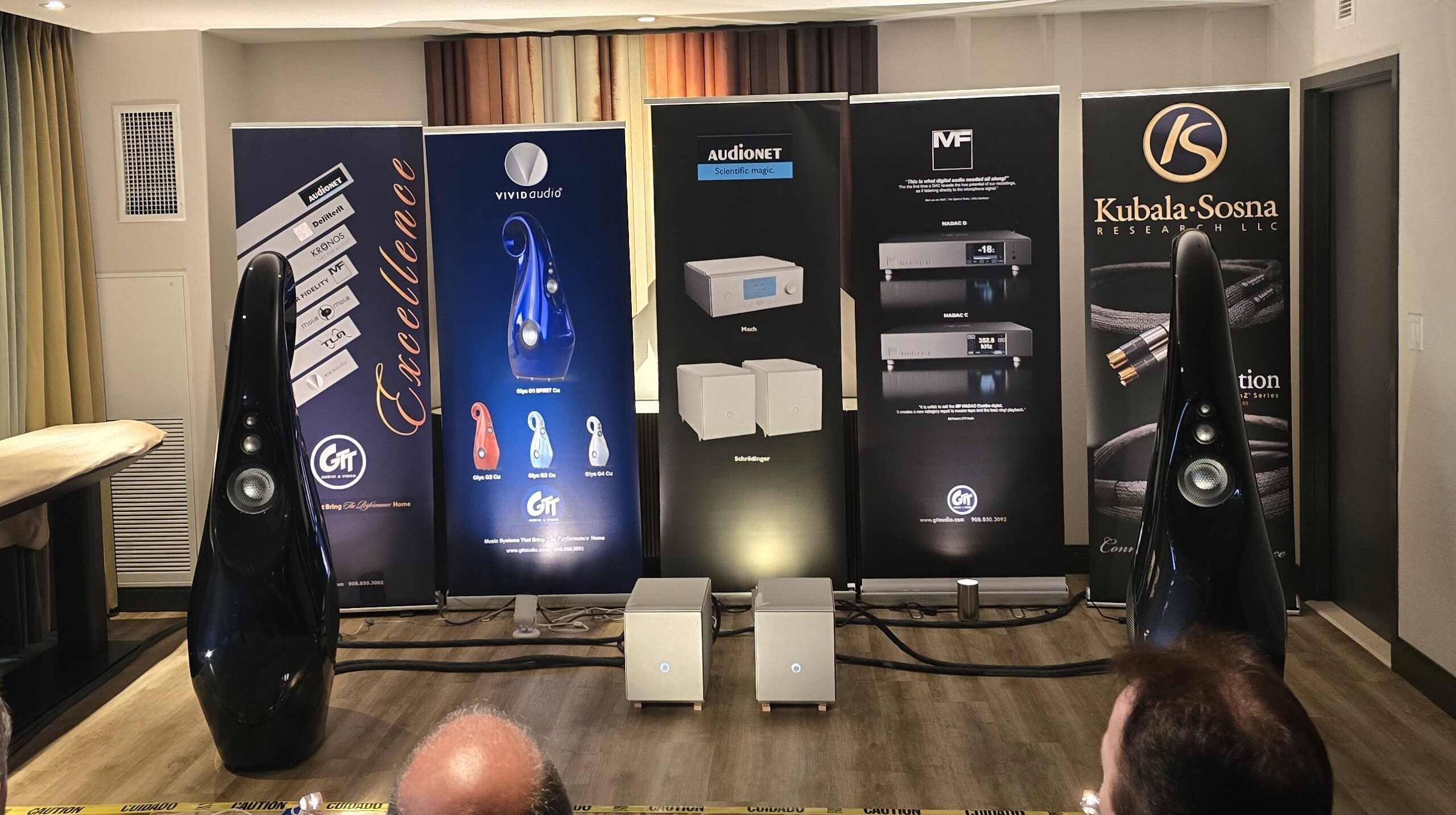GTT Audio had one of the larger listening suites on the 16th floor, bringing with them the new Vivid Audio Giya G2 Spirit Cu loudspeakers. The 'Cu' is a new version of the Giya that adds cooper caps to the magnet motors of both the bass and mid-range drivers. The original G2's were wonderful in the own right. The new Cu series raises the sonic environment further. In addition, the Master Fidelity NADAC D (DAC) and external C (Clock) units part of their setups. The NADAC is becoming more and more well known as a best-of-breed flagship, having won many awards in it's short history (Stereo Sound Grand Prix, Partime Audiophile Audio Product of the Year, Stereo Times Most Wanted Component, and Audio Art Best of the Year to name a few). It's the DAC/Clock combo that others exhibitors use when they want to show their own gear in the best way possible. The newest offering from GTT is the DeJitterIT NUC-X enpoint streamer.
