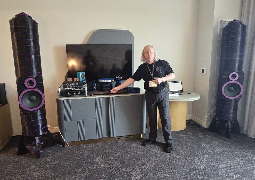 After picking up my convention registration, I headed over to PS Audio's room which was located just behind the registration area. They had a well-defined schedule posted outside showing which products (speakers mainly) they would be demonstrating at different specific times throughout the day. Paul McGowen (PS Audio president) is very well known by many in the industry via his YouTube channel as well as books and countless articles that have been written over the years. As expected, the room was packed. New this year are their new Signature series of components (DAC, Transport, Preamplifier, and Phone Stage/Preamp). PS Audio is one of only a handful of vendors that offers a complete stack of components for the entire listening room. From power regenerators, streamers, DACs, Phono stages, preamps, stereo amps, mono-block amps, and speakers, PS Audio pretty much has it all. www.psaudio.com. (800) PSAUDIO.