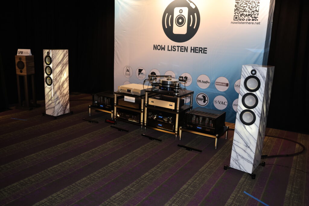 This was one of the standout rooms at CAF 2025 and a massive improvement in the sound from the previous year. New product debuts included the Acora speakers in an exotic marble finish and the Backert Labs Optik Phono 1.1 that among other properties is compatible with the new DS Audio optical cartridge line. The Acora MRC-3 speakers might just be the sweet spot in the product line. The sound here was relaxed and inviting, spacious with a serious case of imaging. One room that I could sit in and listen all day.