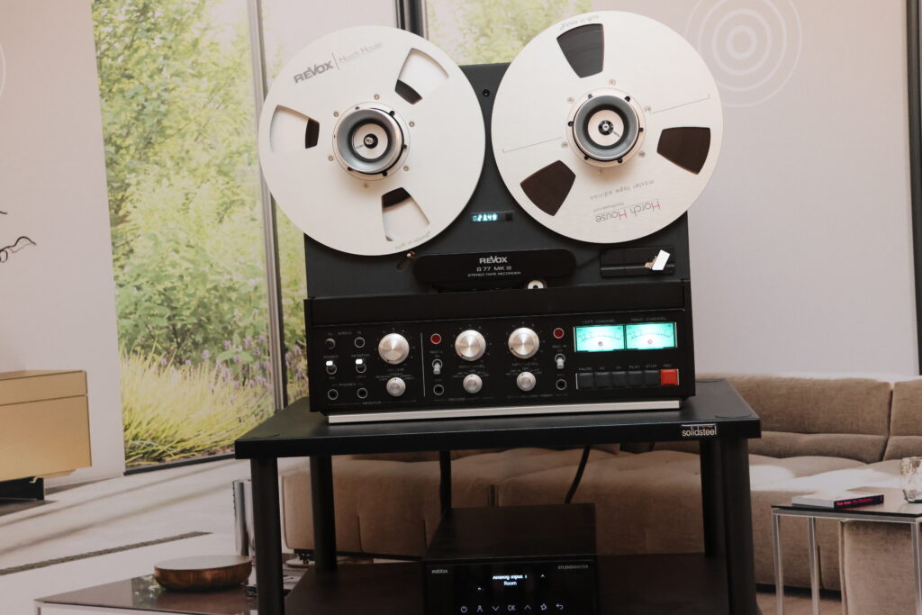 Revox continues its return to the high-end audio market with a middle ground priced system based around reel-to-reel or digital sources. Me? I was curious what new reel-to-reel tape releases (or LPs) Volker Lange of Revox/Horch House brought to CAF. Nor was I disappointed leaving CAF with a 15-ips tape copy of Lori Lieberman's latest release Perfect Day recorded by Guy Sternberg owner of Low Swing Records in Berlin Germany! Even better news? One of the cuts features Lori performing a duet with Fink!