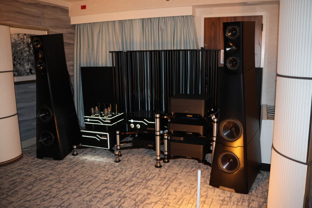 This sound of this room was surprising good considering they had to shoehorn these speakers into a small exhibit room.