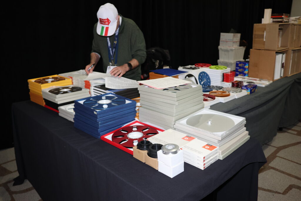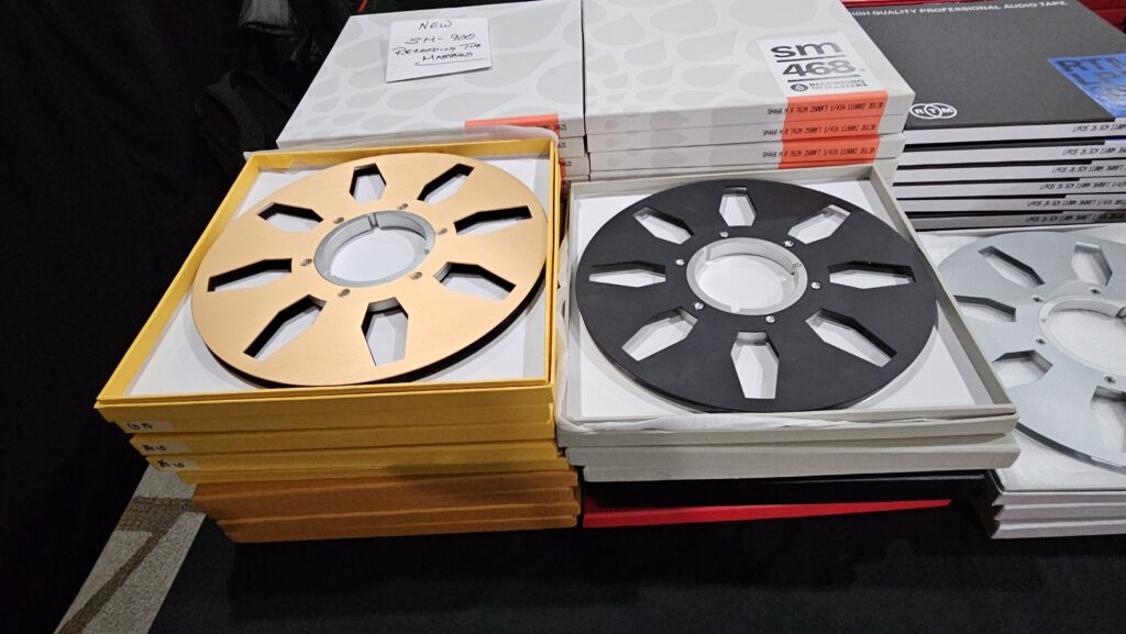 Leslie Brooks was tucked into one corner of the Classic Audio Reproduction speaker room, surrounded by an assortment of tape accessories. Among them were his own new brand of 7- and 10-inch precision cut metal reels in a variety of colors for $60. Additional tape goodies included silicone reel spacers ($8/pair), AEG to NAB Hub adapters ($40), Revox style NAB Hub Adaptors ($60/pair) and more.