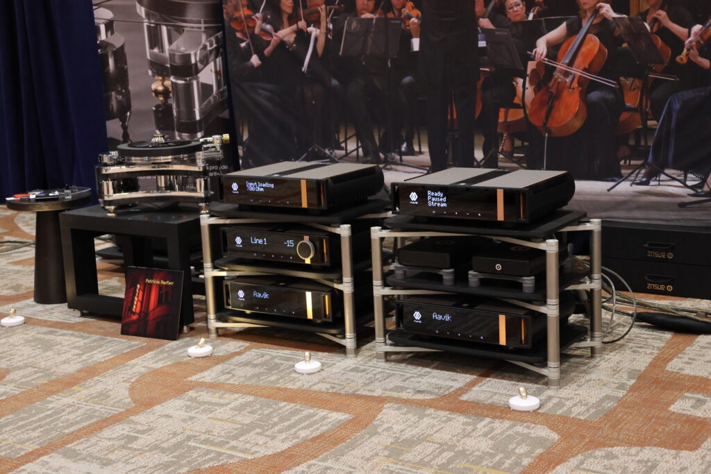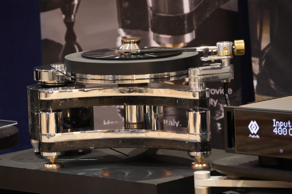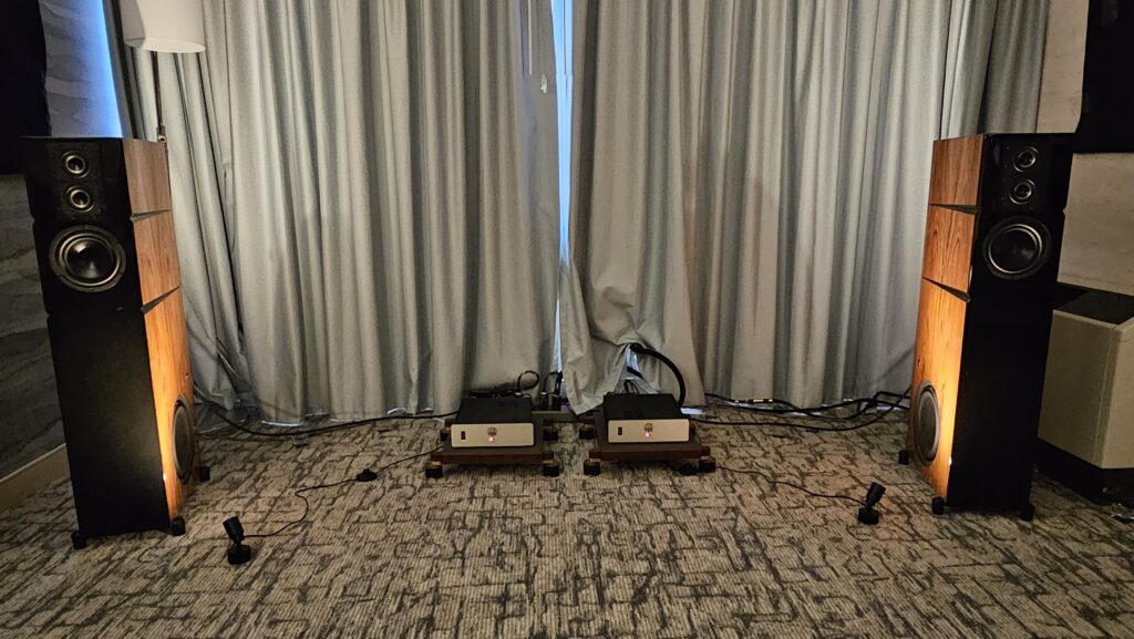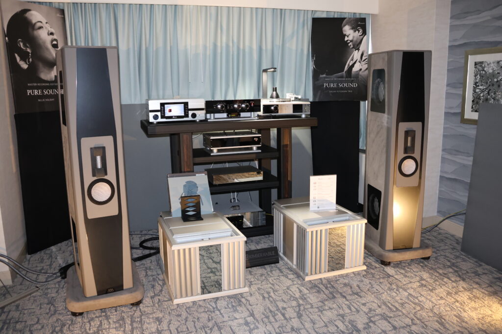 Christian Rogers, long time owner of Audio Video Artistry in Memphis, demonstrated a slightly smaller version of the Master Artist Audio speakers (first shown at AXPONA) fronted by an all Burmester system. Two additional Master Artist Audio speaker models were showcased in the two adjoining rooms. The Masterpiece Towers with their RAAL ribbons and Accuton 7-inch midrange and 8-inch woofers filled the room with sound, were oh so easy on the ears and grain-free. On the other hand, the sound could just have been a little more resolving. I kept thinking a little better cartridge might have done the trick.