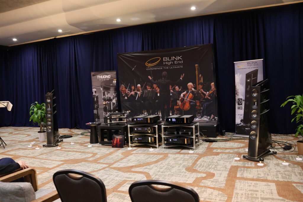 Blink Audio up Boston way (and Matterhorn Audio Group) journeyed down to Rockville with a few new products of note including the stunning looking, oversized platter, belt drive Thuono turntable (first sighted at last years' CAF) from Italy and Ansuz cables. (I think they ended up using the My Sonic Labs Signature Gold cartridge). The sound here was not unlike the issue experienced with widely spaced speakers in a huge room: if you weren't sitting dead center everything was off to one side or the other. I was curious since the Thuono table piqued my interest last year in the Grandinote room. The room's sound was fast, clean, and detailed, though somewhat lean and a smidge compressed.