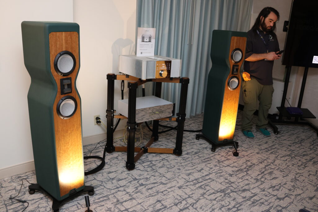 Audience introduced their upcoming ClairAudient Bellare wide-bander speakers at this year's Capital Audiofest. Audience's new baby—and big, no massive step up in their speaker product line—uses multiple, identical high resolution 3-inch high-excursion drivers to cover the range above 120 Hz and self-powered mid and woofers driven by 300 wpc amplifiers and DSP. Expected release in Q1 2026. The sound here was a little lean; as if something in the system hadn't broken-in yet.