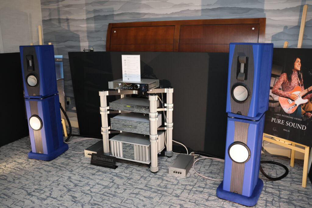 Master Artist Audio Masterpiece Tower speakers, $65K, Burmester 909 monoblock amplifiers, $80K, Burmester 077 preamplifier, $65K, Burmester 175 turntable, $65K, Burmester 111 streamer, $55K, Kimber Kable cables
