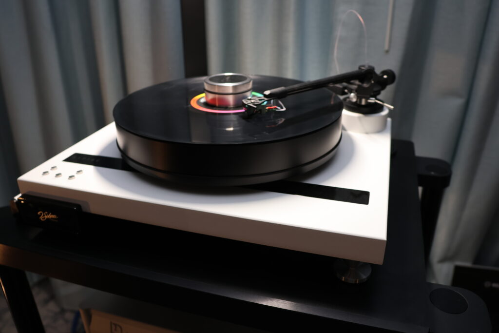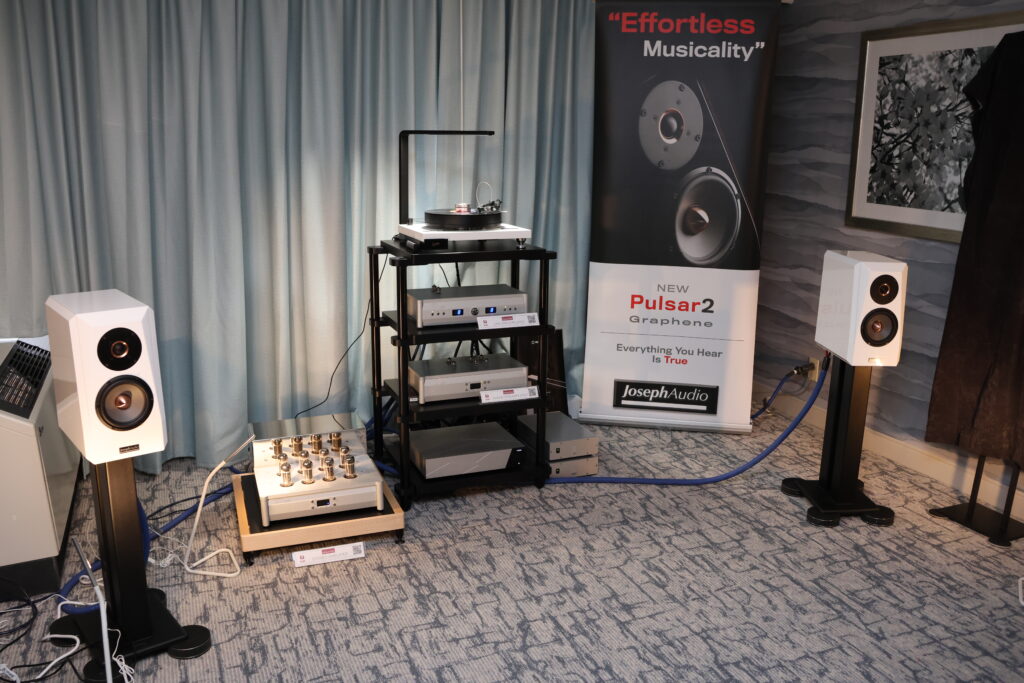Command Performance's other main floor demo room featured premieres of J. Sikora's new entry level ASPIRE turntable (on display at AXPONA 2025) and the latest iteration of Jeff Joseph's Pulsar speakers replete with Graphene drivers. For the record, this is same speaker model that Jeff demoed at the inaugural, kickoff Capital Audiofest in 2010! How long does a speaker line last? The sound was a little congested and edgy on day one; but as typical for audio shows, the system had mellowed out and the small stand mounted Pulsars produced a sound that belied their size by Sunday of the show.