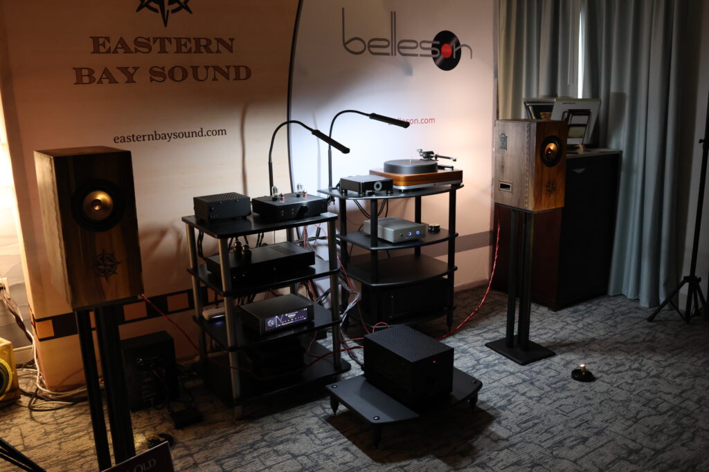 The Eastern Bay Sound room featured the premiere of Belleson's "smaller" phonostage. Like the larger model, the Belleson phonostage allows for remote adjustment of loading and other settings via a smartphone or iPad app. I just love that feature!