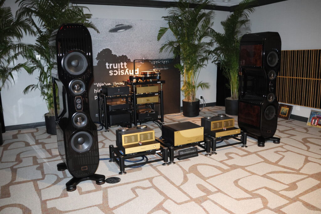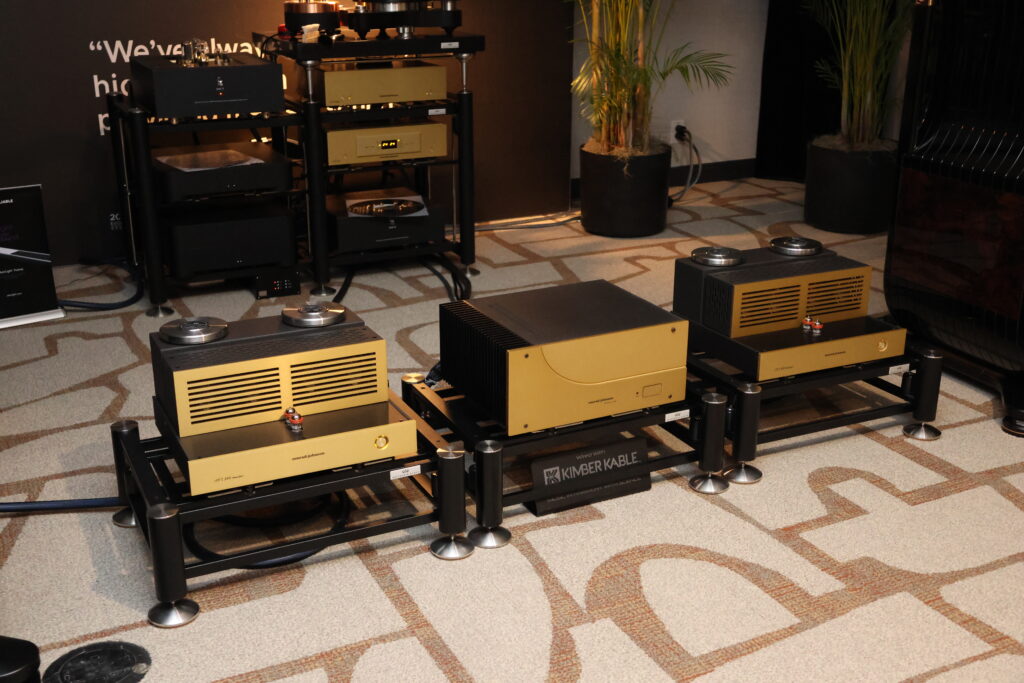 Kharma Exqusite Midi Grand Signature speakers, $330K, conrad-johnson ART-300M monoblock amplifiers, $45K and conrad-Johnson Premier 350 (Truitt upgrade LE amplifier, $40k, conrad-johnson ART-88 preamplifier, $30K, conrad-johnson ART phonostage LE, $30K, TW-Acustic Raven anniversary with Black Night upgrades, TW-Acustic Raven 10.5 tonearm (no price), Kuzma CAR-50 cartridge, $11K, Taiko Olympus with Olympus I/O music server, $100K, SW1X Audio Design DAC V Classic, $68K, Siltech Double Crown and Kimber Select cables