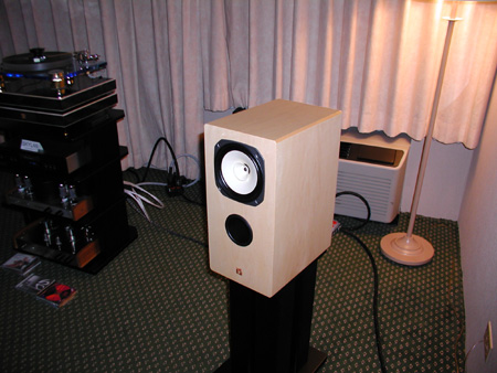 The Vivaldi room showed off the Lowther based full-range speakers. Very nice design that looked as good as it sounded. Not quite full-range, but it did offer a credible sound that was musical and fairly extended for a Lowther horn based speaker.