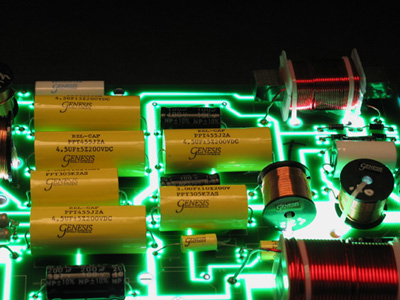 Next up is a pair of 6.5-inch aluminum drivers. These can be considered woofers, but Genesis refers to them as midbass couplers. The description is accurate. Possibly surprising is the fact that they are not mounted adjacently—the titanium midrange driver and the circular 1-inch ribbon tweeter are mounted slightly off center between the two midbass couplers. The entire arrangement sounds like a single unit, with no audible hint of a crossover. There is no sense of "tweeter crawl," the sensation that an instrument moves upward as notes climb the musical scale. The midbass couplers and the titanium midrange drivers open to the rear of the front baffle, which makes them dipole radiators. The extremely thick front baffle has a slight, 5-degree backward tilt, which results in correct phase alignment and is one of a number of design features that explains the neutral and detailed performance of the G6.1s. The tweeter is not mounted to allow rear radiation. Instead, a second circular ribbon tweeter is mounted higher on the rear of the open-design cabinet. Unlike the front-mounted one, the rear tweeter does not have an output adjustment control. To summarize, we can call the subwoofers omni-directional radiators over their rather limited frequency range and describe the rest of the system as operating in dipole mode. Why, you ask? There are two principal reasons. First, the rear radiation adds a great deal of ambience and soundstage depth. Changing the distance between the loudspeakers and the wall behind them can alter these effects. Similar changes can be had by adjusting the amount of absorbent material in the rear of the enclosures, but this is not recommended for home users. Second are the laws of physics that come into play with dipole radiation. Much of the side radiation at 90 degrees off axis is greatly reduced or cancelled, which causes a reduction of the sound bouncing off any wall to the side of the dipole radiators and adds significantly to the clarity of dipole speaker systems. I can testify to its effectiveness in my listening room. The tweeter is a one-inch circular planar ribbon crafted from an extremely thin membrane of Kapton that has a photo-etched "voice coil" that is 0.0005 inch thick. If you picture how thin that is, you can appreciate that the entire radiating surface has less mass than the air in front of it. This lack of mass is a major factor in the G6.1s' ability to accurately reproduce frequencies beyond 35kHz. The tweeter's fantastically low mass allows superb transient response because it responds to a musical signal almost instantaneously, then stops on that famous dime. Low distortion is also inherent to this type of radiator. The response speed is said to be about the same as the best electrostatic or ribbon designs.