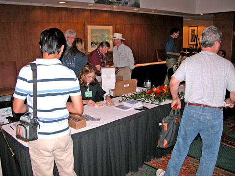 After spending some hours taking in the rooms that first day, it was time for the PFO Gang to head for The Great Divide bar in the atrium and relax with brew and in vino veritas! Above, left to right, are PFO's Lila Ritsema, Carol Clark, Roger S. Gordon, and John Zurek. Cheers, mates!