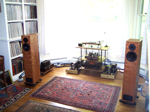 Stop Me Before I Get Carried Away I have had the pleasure of auditioning these speakers with two fine Cary Audio single-ended triode amplifiers. This included my CAD 805 Anniversary Edition monoblocks, and also a pair of Dennis Had's latest monoblock design, here with me for review. These utilize the 45 Triode tube for output, and are designated as CAD 45SE's, (of which more in a separate review soon). I also compared the PMC FB1+ to my Sonus Faber Grand Piano floor-standers which I still had on hand. The two speakers are almost identical in height and width. Driver-wise, the Sonus Faber is a ‘two and a half'-way design, i.e., two identical woofers that cross-over at different points, and as I mentioned, the two speakers seem to share almost identical tweeter units, mounted at almost identical heights from my listening position. All in all, a very telling comparison. I should note that the Sonus Faber I was listening to is not the newly offered ‘Domus' model, but the now-previous model, the ‘Concerto Home.'
