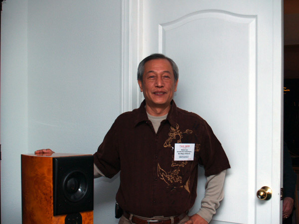 Maestro Robert Lee with his award-winning Adagio loudspeaker The anteroom featured the Acoustic Zen Technologies Adagio ($4300) driven by Ryan Tew's ICE Power based Red Dragon Leviathan mono block amplifiers ($5995/pr) or the Response Audio Bella Extreme 100 watt per channel tube amplifiers ($7995/pr). Sources were the ModWright modified Sony 9100 DVD player with Tube rectified external power supply ($4000), and a VPI Scout ($1650) sporting a Dynavector 10x5 ($380). Signal passed to the new ModWright SWLP 9.0 SE line/phono stage with Tube Rectified external power supply ($4495). The whole system featured Acoustic Zen Technologies Cables.
