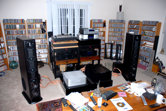 The Lamm M1.2s on Walker Audio Prologue Reference Amplifier Stands in Ye Olde Editor's listening room—how sweet it is! My friend Lynda is an artist and we spent the time working on a brochure detailing some of her current offerings. Freshly ground Costa Rican coffee, a dear friend, the creative process of mixing photographs of her art with graphic design …again, not a conventional birthday I grant you …but not bad, either. I do admit it's not a polyester tie or a subscription to Sports Illustrated, but then again, those are the perils of the unconventional life. Anyway, after we got to a stopping point with the brochure we wandered down into the listening room and I punched play to resume a Joe Beard disc I had on when she arrived in the morning for our trip to Portland. Let me emphasize this. When she arrived in the morning, my system was up and I was playing an old Joe Beard Audioquest recording on CD; not SACD, not even a JVC XRCD, just a plain old CD. I remembered that she really liked the bit she heard that morning when she was showing me her new work, so I figured I would just play the whole thing for her. Blues, birthday …seemed apropos. Close Encounters So we sat down and cued it up. I was sitting there, disoriented, trying to digest what I was hearing when she looked at me and said, "What the hell?" Lynda and I have been friends for several years and while she is not even the least bit an audiophile she is an avid music lover and (most importantly for this article) she has heard just about every iteration of my system for at least three years. She has never reacted as she did. For my part the only way I can describe how I was reacting was that the recording opened up in front of me, and I fell in. Now, I completely understand if you react to that pronouncement the same way Terri Garr did to Richard Dreyfus in "Close Encounters," when he tried to tell her about the aliens at the railroad crossing. And I don't even have the asymmetrically tanned face to prove that something actually happened. I am just glad I was not alone. I want to emphasize something. Our sushi fest earlier that day did NOT include fugu; nor were there any other hallucinogenic or psychoactive fish on the menu. The only stimulant I had ingested that day (other than the wasabi) was some coffee. Ok, back to the Close Encounter …Lynda nudged me when I didn't respond to her, "What the hell?" question. "I have never heard anything like this before," she said quietly. I didn't say much, and when the disc ended I simply got up and put another on, another CD, not an SACD. I put on Cyndy Lauper for heaven's sake. Sue me. I have long admired her singing, in spite of her unfortunately whacky affectations and her often-questionable taste in material. As familiar as I am with her music, I was suddenly lost in her performance. Through one familiar song after another …her voice …her breathing, the sound of her head turning just slightly as she sang …the recording was suddenly new again, mysterious …I could almost smell her sweat …and I was being flooded with all of these emotions. I looked at Lynda and her face was flushed, eyes dilated. And then it got really, really spooky. I put on the DCC gold disc of The Doors, LA Woman, and cued up "Riders on the Storm." I could smell the ozone, feel the water in the air as the storm wrapped around me; those monstrous XLH Reference 1812 speakers were simply gone.