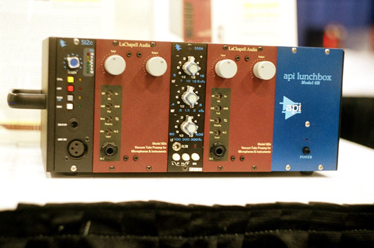 Big microphone news this year was that David Bock, formerly of Soundeluxe, is now on his own and selling a line of nicely-built microphones under the name Bock Audio. This includes a mike based around the old Telefunken ELAM 251 design, as well as a tube and a FET-based condenser microphone of his own original design. Definitely worth looking at, and certainly a set of products with a future ahead of it. Kent Fuqua from KMF Audio was not showing any products at the show, but was wandering the halls talking about his new stereo tube condenser mikes. He was running an off-site demonstration that I was sadly unable to attend. The demo CD, though, sure sounded awfully bright and heavy in the presence region.