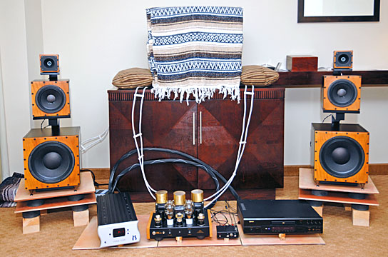 Jim was powering his three way speakers with an AES (Cary) with 2A3C tubes. A Denon 2910 with mods by Underwood was the source.