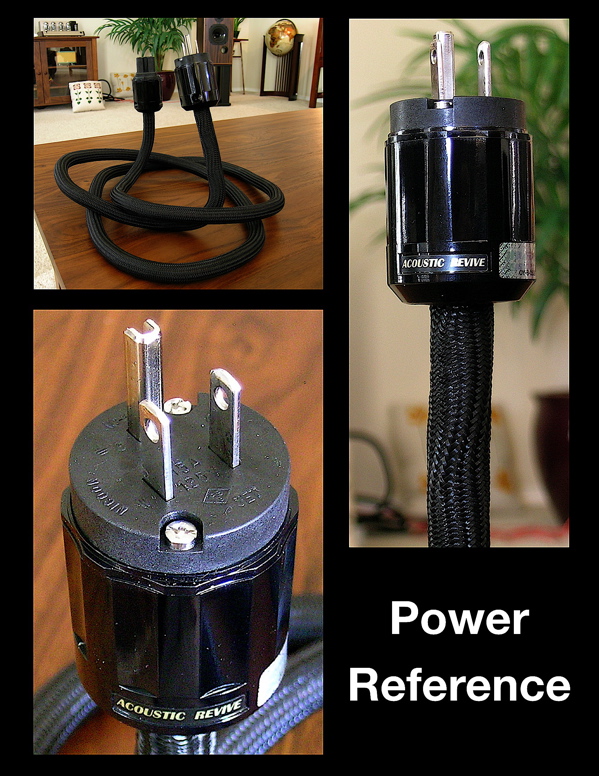 Power Reference Power Cables The Acoustic Revive Power Reference power cables' materials are picked by ear to provide the best musical performance, and are hand crafted in a very laborious process that is described in detail on the Acoustic Revive web site here.