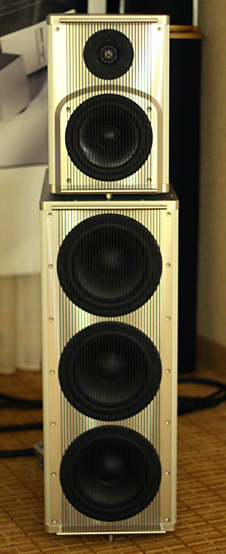I sat down for a listen to the Tidal Contriva loudspeakers, $52,900 - $60,900 depending on finish, a large floor stander featuring a ceramic tweeter, one 7" and two 8" ceramic drivers. The sound was as fast and clean as I've heard with deep authoritative bass with the kind of speed and detail Wilson Benesch is known for. The dynamic range and pinpoint imaging was exceptional. Driven by the Tidal Impact amplifier, $40,900, and Preos preamplifier, $42,900, the sound was among the best of the show. I made many return trips to this room. Krell Krell was displaying their new the Modulari Duo loudspeaker system. The speakers consist of a two way monitor sitting atop a bass module with three 8" drivers. The cabinets are machined from solid billets of aluminum and weigh over 300 pounds. With all Krell Evolution electronics driving the speakers, the sound was authoritative in the extreme. Words that came to mind include realism, presence and dynamics that were so life like they were scary. I've never heard speakers with dynamics like this. They are available now at $65,000/pair.