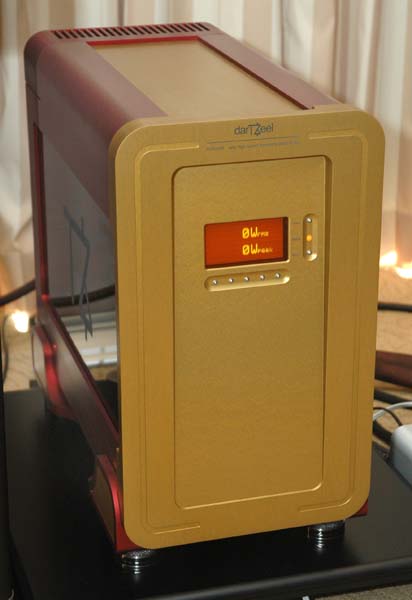 This year, Portland area Blue Light Audio owner, fellow New Yorker and good-friend Jonathan "Vin" Tinn (sorry, Jonathan, I had to!), was showing a number of world premier products. Hervé Delétraz and Serge Roche of Switzerland's darTZeel were rightfully proudly showing off the completed-just-in-time-to-ship NHB-458 mono amplifiers ($135,000), while Music Server Direct's new MSD-1 Reference Music Server ($1995), controllable with your iPhone or iPod touch, made its initial showing as well. Optical playback came from the Playback Designs MPS-5 Reference SACD/CD Player ($15,000) or the brand new MSD-1 Reference Music Server ($1995). Vinyl was decoded by the Kono Audio "The Beat" turntable with Reed Tonearm ($24,000), fitted with, once again, the Ortofon A90 cartridge ($4200). The darTZeel NHB-18 NS preamp (with MC phono stage) handled source selection, and power conditioning was handled by the superb Audience adeptResponse 6-T ($4600)