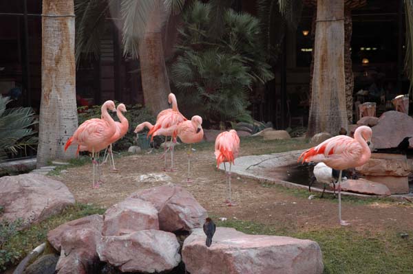 One of the many water exhibits within the central "park" area entirely within the walls of the hotel Along with nearly 3700 hotel rooms, the Flamingo offers a 77,000 square foot casino, all resting on a 15-acre site that features a central outdoor area housing an exhibit of their signature flamingos and other wildlife, some remarkable water exhibits, as well as enormous trees and other beautiful flora. Looking down on this central nature reserve from the upper floors, all carefully hidden away in the middle of the one of the most glitzy concrete and steel developments in the United States, while seemingly very out of place, it really is quite welcoming, and VERY relaxing.