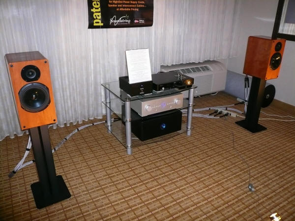 ModWright, Nola speakers, Soundstring ModWright electronics, Nola speakers, Soundstring cables One of the things about a tradeshow like RMAF is the chatter and note swapping in the hallways. Just so, we were advised to check out the Nola speaker rooms, and this one was a discovery for high value/low cost. It held my attention twice as long as some of the big boys. There were no flaws of commission, while many things were right. With an approximate system cost of $15,000, it represents very good value.