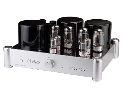 The A-60R is a lovely sounding tube integrated though it may be a little underpowered for my Infinity Kappa 7's which have a sensitivity rating of 88dB and a minimum power rating of 40 watts. I am using the 4 ohm taps. My current system is a hybrid, the above mentioned tubed preamplifier and an Adcom GFA-555II transistor power-amp which is rated at 325 watts into my 4 ohm speakers. I spent two weeks casually listening to music and watching TV through the A60R while it burned-in, when not at home I ran the Burn-In tones on my XLO/Reference Recordings Test & Burn-In CD. Then I began critical listening using my best SACDs, DVD-As and high resolution music downloads. And in the final week I even listened to regular CDs and MP3's. The amp has a sweet and lovely sound, however on really dynamic material such as big orchestral SACDs, it sounds a little compressed. With most of the program material I played it never sounded like a low-power amp, and in more intimate music it sounds better than many higher powered amps I've heard. The sound was beautiful, relaxing, with good impact, a smooth midrange and excellent deep bass. It has very accurate timbre, a nice large, deep and wide soundstage with excellent imaging. A real pleasure to listen to. With high resolution material especially SACDs, I slightly preferred my AMC/Adcom combo however I have never heard CDs sound less digital than with the LA Audio A-60R. It wouldn't convince me to adopt the CD format, however I am wondering if removing all transistors and other solid-state devices from the CD signal path might help make CD an enjoyable format for those of us who don't care for the sound of CDs. The remote control includes the following functions: standby, mute, volume U\up and down, input selector, and a left/right channel selector (left only, right only or stereo). I would highly recommend this tube integrated if you have very efficient speakers or do not listen to demanding music. Otherwise I would go further up the line for one with more power. Teresa Goodwin