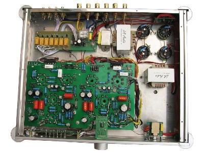 The A-60R is a really gorgeous looking tube integrated amp and is extremely heavy, especially considering it is only 60 watts per channel. LA Audio was established in 1988 and hand craftsmanship is claimed to be the main reason for the high quality of its components. I like that it has only a volume control and input selector, bravo! I would have liked a headphone output jack. It doesn't have one so if you use headphones you will need a separate headphone amplifier with a switcher box as unfortunately the A-60R also does not have a tape loop normally used to connect a dedicated headphone amplifier. I was surprised it had a remote control, a rarity on a tube preamplifier. One could get lazy not having to get up to adjust the volume. I left the remote control lying beside me but I still got up to adjust the volume, I guess it is hard to ignore half a lifetime of habit. I just couldn't remember I could now adjust the volume without getting up. Perhaps I would take a few months to get used to the convenience of the remote controlled volume. The tube compliment is four KT-88's for the power amp section, two 6SN7's, and two 6SL7's for the preamp section. My current preamplifier is the AMC CVT1030 Class A Valve Preamp with two 12AX7's and two 12AU7's.